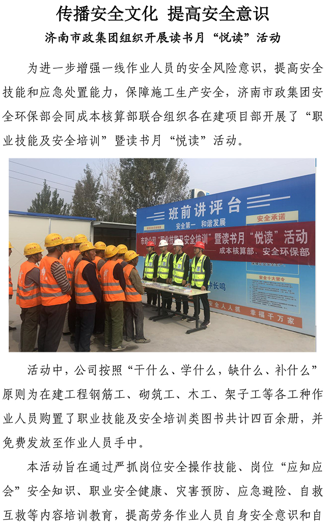 傳播安全文化 提高安全意識——濟南市政集團組織開展讀書月“悅讀”活動