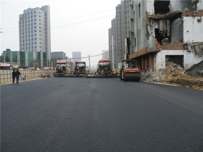 緯十二路西側(cè)快車道瀝青攤鋪施工