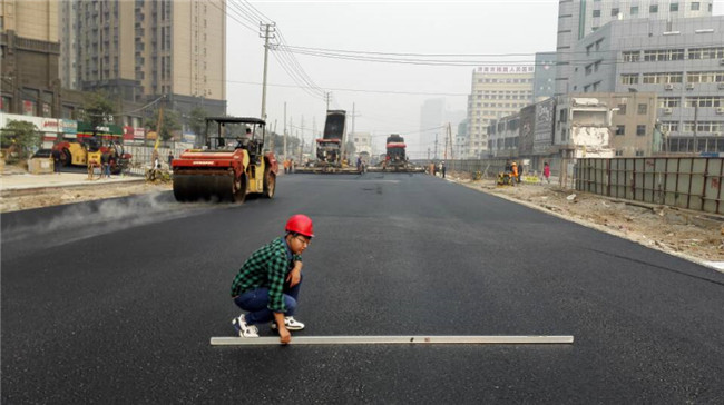 10月18日上午,緯十二路道路改造工程第二標(biāo)段進(jìn)行經(jīng)一至經(jīng)六段西側(cè)快車道瀝青攤鋪施工。此次主要施工瀝青底面層和中面層,攤鋪面積約12375㎡,計(jì)劃分兩天攤鋪完成。瀝青碾壓及時(shí),項(xiàng)目部質(zhì)檢人員及時(shí)對平整度進(jìn)行檢測,保證瀝青攤鋪碾壓成型質(zhì)量。