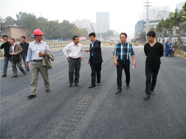 10月20日下午,濟南市市政公用事業局副局長修春海來到濟南市市政工程有限公司緯十二路道路改造工程現場, 詳細了解工程進度并察看現場施工情況。修春海對現場的安全文明施工等工作表示肯定,并要求各部門要在保證施工質量和安全的基礎上,大力推進項目建設進度,確保按期完成施工任務。